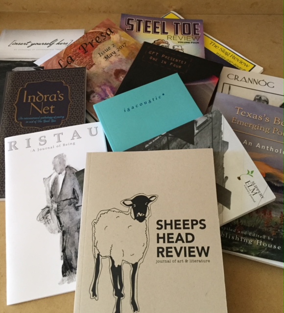 My poetry has appeared in these print publications over the past year. Although much of my writing is published online, I’m still enamored with print. Something about the smell, the feel of paper. Ah, bliss.