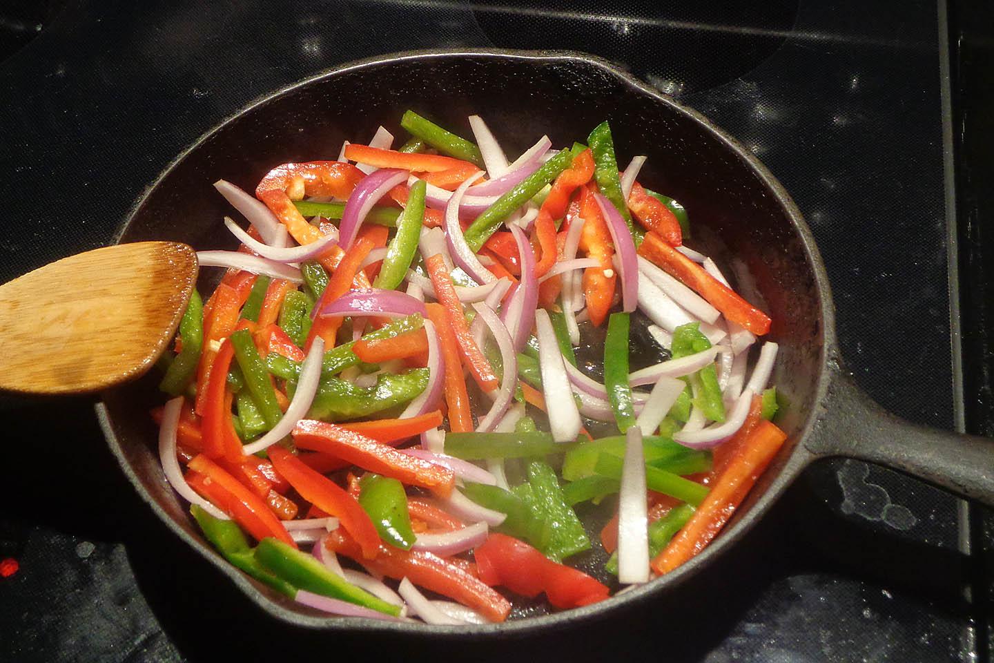 Dice onion, peppers – one hot,